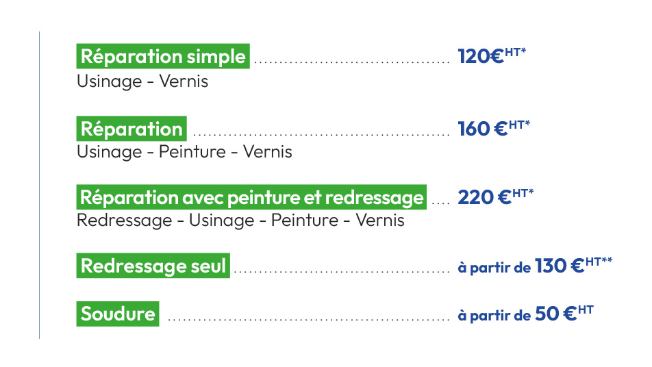 Sur présentation de la jante abîmée, nos experts établissent avec vous le devis des réparations. S’il vous est impossible de nous présenter la jante démontée, l’immobilisation du véhicule est nécessaire. Dans ce cas, nous fixons ensemble un nouveau rendez-vous afin de procéder à la rénovation des jantes.